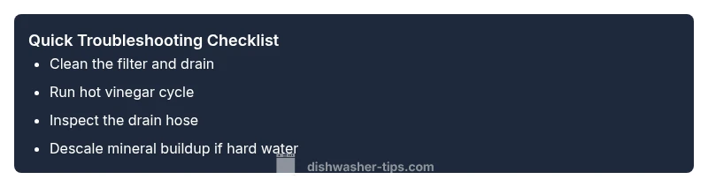 Adopt a stepwise approach: isolate the source first, then test fixes, and verify results after each step. Start with the easiest fixes (filter cleaning, vinegar rinse), then proceed to deeper cleaning of hard-to-reach areas. Keep a log of odors and what changed after each step; this will help you decide whether to call a pro. This methodical approach mirrors the practical framework recommended by Dishwasher Tips Team and makes it easier to decide if professional service is needed.