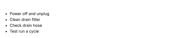 This section walks you through the most common scenario: drain filtering and hose issues. Follow these steps in order to confirm cause and effect: