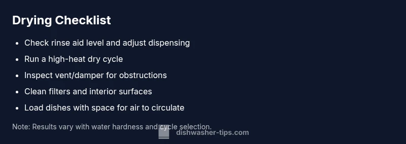 When a GE dishwasher fails to dry, it disrupts everyday routines and leaves dishes damp or osmotically moist. The phrase ge dishwasher not drying is a symptom that can have several root causes, from simple loading or rinse aid issues to more technical problems like a failing heating element or a clogged vent. In practice, most loads that come out damp are not a sign of a single problem everywhere in the appliance—it's usually the drying phase that isn't completing its cycle. Dishwasher Tips has found that homeowners who start with the simplest checks—rinse aid, cycle selection, load patterns—often recover drying performance quickly. As you troubleshoot, aim to verify the drying behavior on a test load rather than guessing from a single cycle. A consistent drying performance is a sign the system is correctly heating, venting, and circulating hot air over the dishes.