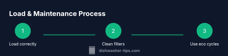 Run full loads, use eco cycles when dirt is light, and avoid heated-dry on plastics. Ensure water heater temperature is efficient and consider off-peak timing if your utility offers it. Regular maintenance keeps the system efficient, reducing energy waste.