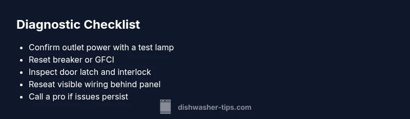 Urgent troubleshooting guide to diagnose why your dishwasher won't turn on. Check power, door switch, control panel, and wiring with clear steps from Dishwasher Tips. Learn fast fixes and when to call a pro.
