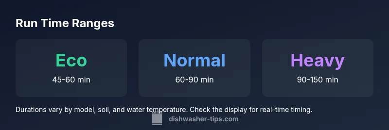 According to Dishwasher Tips, run time is influenced by cycle choice, soil level, water temperature, and energy settings. The Dishwasher Tips Team found that many models adjust timing automatically when sensors detect load weight and dirt. By understanding these factors, you can choose the most efficient option without sacrificing cleaning power. In practice, eco modes tend to be shorter, while heavy cycles push toward longer durations. Always check the user manual for your exact timings, as manufacturers tune cycles for performance and efficiency. For homeowners, this means selecting the right cycle based on load complexity rather than sticking to a single expected duration.