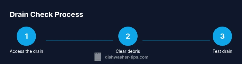 To check your dishwasher drain, unplug the machine, locate the drain hose and filter, remove visible debris, and clear blockages. Then reassemble, run a short test cycle, and observe for proper draining. Gather towels, a bucket, pliers, a flashlight, and a small brush. According to Dishwasher Tips, this quick check helps homeowners detect clogs, leaks, and hose kinks early.
