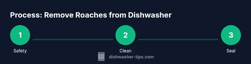 - Unplug the dishwasher and verify power safety. - Inspect for leaks and seal gaps. - Remove racks, clean filters, and scrub tub walls. - Sanitize with safe cleaners and odor-control additives. - Dry thoroughly and run an empty hot-cycle. - Re-check for signs of roaches in the following days. - Implement ongoing maintenance to prevent recurrence.