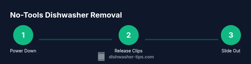 In this guide on how to remove dishwasher without tools, you will learn a practical, no-tools approach that works for most standard under-counter installations. The goal is to minimize risk, protect your floors, and avoid unnecessary damage to cabinetry. According to Dishwasher Tips, a careful plan and calm execution dramatically increase the odds of a successful tool-free removal. Start with safety: unplug the unit from the wall outlet or switch off the breaker feeding the circuit. If your home uses GFCI outlets in the kitchen, test the outlet to confirm there is no power. Next, shut off the water supply; locate the shut-off valve under the sink or behind the toe-kick and rotate it clockwise until it stops. Have your towels ready; place a shallow bucket near the bottom front of the cabinet to catch drips. A flashlight or your phone flashlight helps you inspect dark corners inside the cabinet and behind the unit. Clear the area around the dishwasher, move any obstacles, and plan a clear path to pull the appliance straight out. Finally, be realistic about how much you can lift yourself—enlist a helper if the dishwasher is heavy.