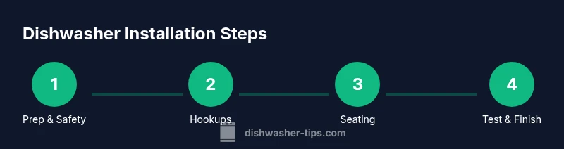 In practice, installing a dishwasher follows a clear sequence: prep, hookup, seating, and testing. The prep phase covers safety and space checks, removing any old unit, and gathering the required tools. In the hookup phase, you connect the water inlet hose to the shutoff valve, attach the drain hose to the sink drain or disposer with the proper loop, and ensure electrical connections meet local code. The seating phase involves sliding the dishwasher into the cabinet opening, checking for level alignment, and securing the unit with mounting brackets or screws. Finally, the test phase runs a short cycle with the doors closed to observe drainage, verify there are no leaks, and confirm that spray arms rotate freely. If something looks off, recheck hose clamps, verify the high loop, and confirm the unit is level. This step-by-step is designed to be followed methodically to avoid common mistakes and ensure a reliable installation that performs as expected.