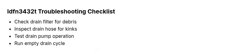 ldfn3432t is a placeholder error code used to illustrate a drainage/control fault. Its exact meaning varies by model, but it usually points to drainage issues or an interrupted cycle. Always check the manual for your specific model.
