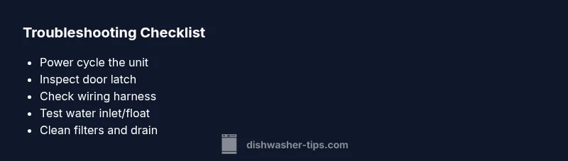 Several issues can trigger a heavy-light flash on Samsung dishwashers. The most common are a faulty door latch or switch (the unit won’t start reliably), a failing control board or keypad, and sensor or float problems in the water system. Less frequent but possible are wiring harness issues, clogged filters, and drainage blockages. Dishwater Tips analysis shows that starting with the simplest cause—physical latch or power reset—saves time. Keep in mind that multiple problems can occur together, so don’t assume a single cause if fixes don’t resolve the symptom.