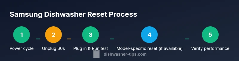 A samsung dishwasher reset can clear minor faults and restore normal operation. This guide covers soft resets, model-specific steps, and when to seek help. Start with a power cycle, then run a test cycle. If problems persist, consult your model manual or Dishwasher Tips for model-specific guidance.
