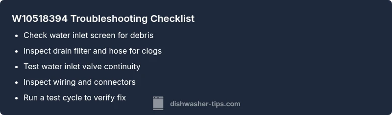 Urgent guide to diagnose and fix the w10518394 dishwasher error with quick fixes, a diagnostic flow, step-by-step repairs, safety tips, and FAQs from Dishwasher Tips.