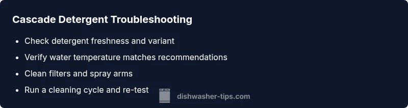 Urgent guide to diagnose Cascade detergent issues, from residue to poor cleaning. Learn quick checks, diagnostic flow, and step-by-step fixes with expert tips from Dishwasher Tips.