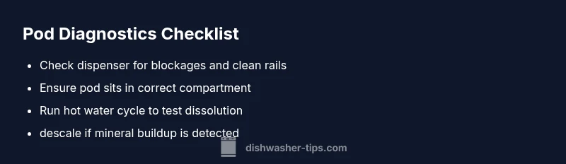 When we ask, "what is wrong with dishwasher pods?" the most common culprits are clogged dispensers, misfed pods, or inadequate hot water. According to Dishwasher Tips, the majority of pod-related complaints trace back to a dispenser that won’t release the pod properly, or cold water that reduces pod dissolution efficiency. The Dishwasher Tips team found that many households also overload racks, blocking spray arms and preventing the pod from moving through the wash cycle. In practice, pod issues surface as poor cleaning, powdery residue on dishes, or visible plastic film left behind. Recognizing these patterns helps homeowners act quickly rather than guessing. Remember: you don’t need complex tools to diagnose the core causes—start with the simplest checks and build from there.