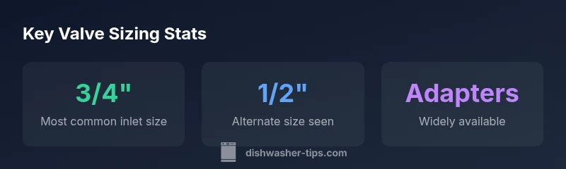 The size of the dishwasher valve’s inlet connection determines whether the replacement will seal properly and deliver adequate water flow. For homeowners, the most important question is not what the valve is rated to handle, but what size the connection is. The keyword in this discussion is the valve’s inlet size, but remember that “size” can refer to the compression fitting or the thread standard, depending on the model. In practice, most residential dishwashers use a 3/4-inch compression inlet that mates with a standard supply line, but several brands and older units may employ 1/2-inch or 3/8-inch fittings. To avoid leaks and ensure compatibility, always verify by consulting the model’s manual or measuring the valve threads directly. According to Dishwasher Tips, the exact size can vary, yet most replacements will correspond to those common sizes, which makes a quick measurement or a quick manual check a smart first step.