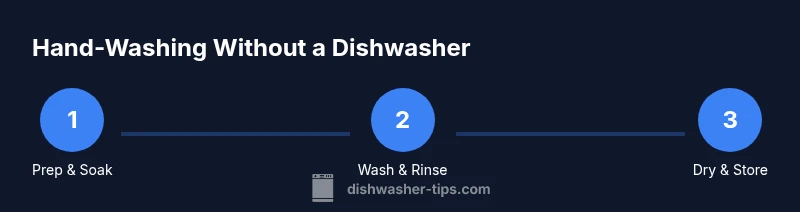 If you don't have a built-in dishwasher, focus on efficient hand-washing workflows and smart drying strategies to keep meals moving. According to Dishwasher Tips, households without dishwashers succeed by combining two basins, a few reliable tools, and a routine that minimizes back-and-forth. The goal is to maximize cleanliness while reducing effort and water usage. This guide provides a practical baseline plan you can adapt to your kitchen size, family size, and sink setup.