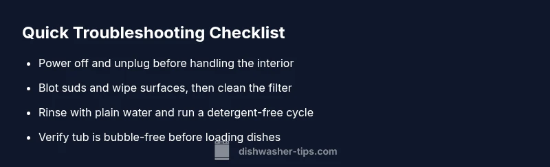 Urgent guide to recover from soap in your dishwasher. Learn safe steps, diagnostic flow, and prevention tips from Dishwasher Tips for 2026.