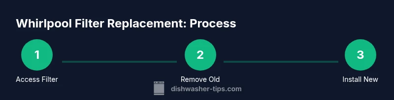Filters are the unsung heroes of a dishwasher. They trap food particles, prevent clogs, and help water flow evenly through spray arms. A clean filter can improve cleaning performance, reduce odors, and extend the life of your pump and motor. According to Dishwasher Tips, regular filter maintenance is a straightforward recovery path that homeowners can perform in under 30 minutes. In Whirlpool models, the filter assembly often sits at the bottom of the tub, protected by a coarse screen and sometimes a micro-mesh. When the filter gets dirty, debris bypasses the filter and re-deposits on dishes. This guide explains what to look for and how to replace it safely, so you can keep your dishwasher running like new.