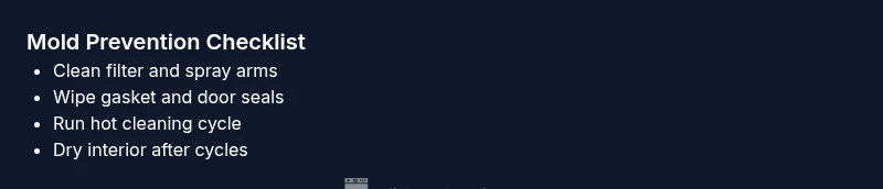 Visible mold in a dishwasher is most often caused by lingering moisture, food particles, and mold-prone gaskets and seals. The fastest fix is a hot-water cleaning cycle with a dishwasher-safe cleaner, plus a thorough wipe-down of the tub, door gasket, and filter. If mold recurs, inspect drainage, spray arms, and seal areas for buildup.