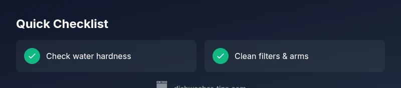 Mineral buildup tends to look chalky or cloudy on glassware and can feel gritty when rubbed. Detergent residue is usually whiter and spotty, often washing off when you wipe with a damp cloth. Distinguishing between the two helps you target the right fix: mineral buildup requires descaling and rinse-aid adjustments, while detergent residue points to dosage and product compatibility issues. The Dishwasher Tips analysis suggests starting with a rinse-aid routine and cleaning the unit's filtration system.