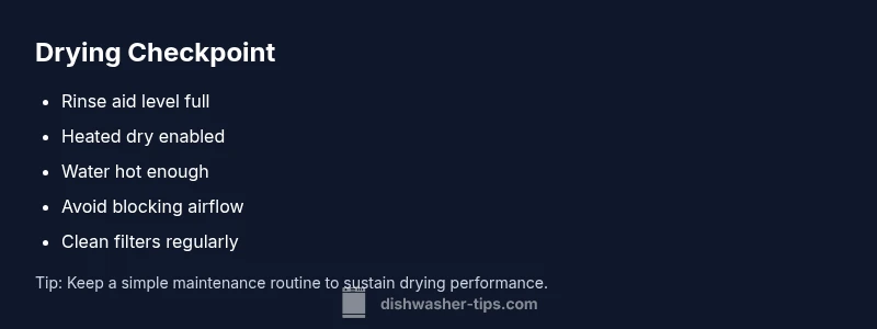 If you are seeing wet bowls after a cycle, you are not alone. The exact phrase why don't dishwashers dry dishes anymore captures a common frustration among homeowners. In many cases, the cause is not a broken heating element but a simple setting, load pattern, or rinse aid issue. The Dishwasher Tips team has analyzed hundreds of user reports and found that most drying problems originate from user settings, product design, and routine maintenance, rather than a catastrophic failure. Understanding how the dishwasher's dry cycle works helps you identify the fix quickly. This guide uses practical tests you can run today and clear steps to restore proper drying performance, with safety reminders and prevention tips for the long term.