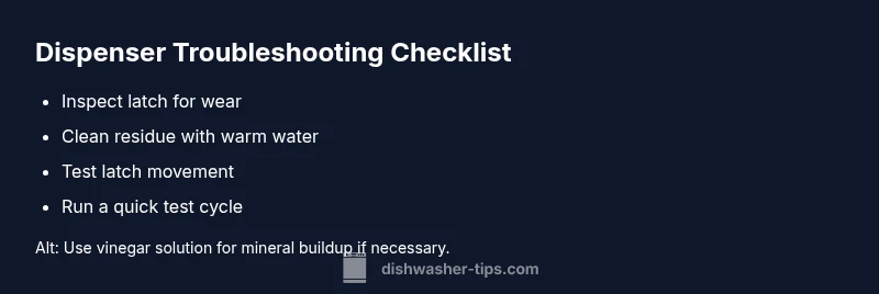 If you're asking why is dishwasher soap dispenser not opening, you're not alone. The issue usually points to a simple mechanical or buildup problem rather than a faulty control board. According to Dishwasher Tips, understanding the dispenser mechanism is the first step to a fast repair. In most homes, the dispenser door acts like a tiny trapdoor that holds detergent until the wash begins. When it fails to release, water pressure, temperature, or residue can keep it stuck. The goal is to identify whether the problem is mechanical wear, detergent residue, or mineral buildup, and to work through safe, reversible checks first before any disassembly.